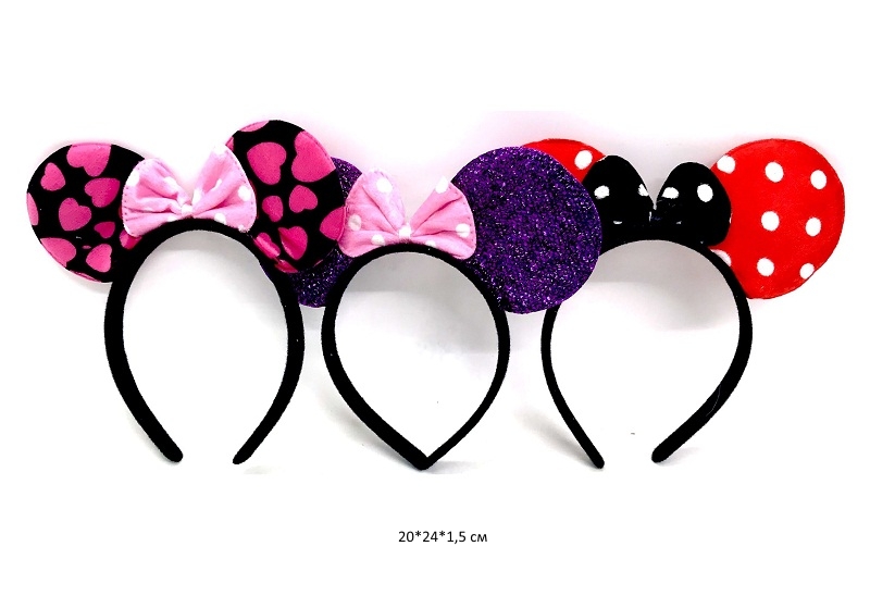 - Ободок арт. 1425-13/912 Ушки бантик цвета микс (12 шт.) в пак._×Ободок арт. 1425-13/912 Ушки бантик цвета микс (12 шт.) в пак._Карнавальный ободок Мышка с ушками и бантиком отличное украшение для вечеринки.