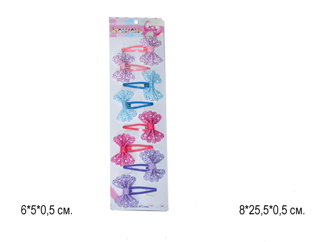 - Набор украшений арт. 677YD" 8 шт. заколочки в пак.×Набор украшений арт. 677YD" 8 шт. заколочки в пак.Заколки для волос с декоративными элементами. Прекрасно дополнят образ девочки. Хорошо держат волосы.